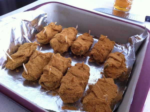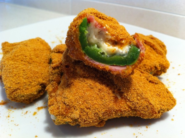 - Coat both sides of each pepper half with egg substitute, and then with the fiber one. Place peppers in a baking pan sprayed with nonstick spray, and place in oven.