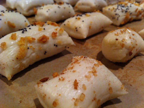 - Brush the rope with each toping mentioned above and sprikle with whatever toppings you wish (poppy seeds, sugar, salt etc. The possibilities are endless)